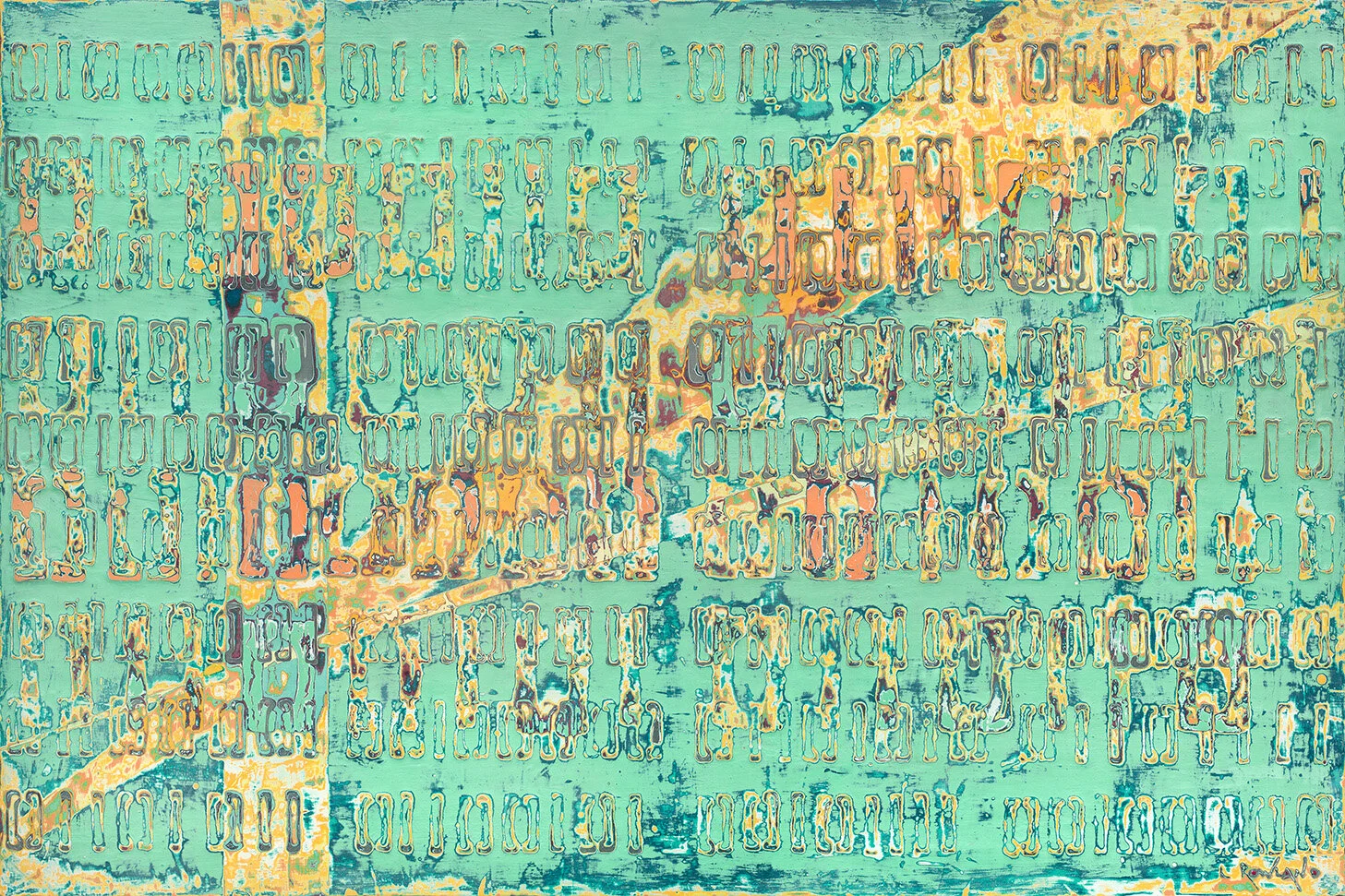 This painting depicts the binary code message “Fuck ‘em if they can’t take a joke”