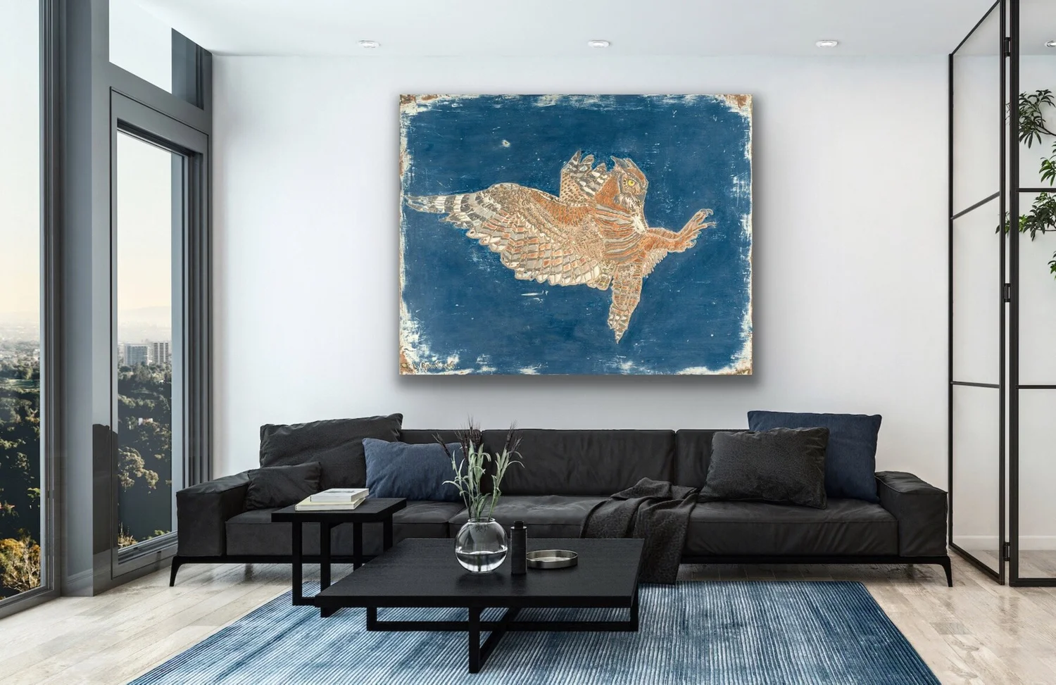 Great horned owls have the largest eyes of any terrestrial vertebrate. They have keen eyesight, excellent hearing, specialized soft feathers that allow them to fly without sound and powerful feet that require a force of 28 pounds to open. They are often referred to as flying tigers due to their hunting prowess.